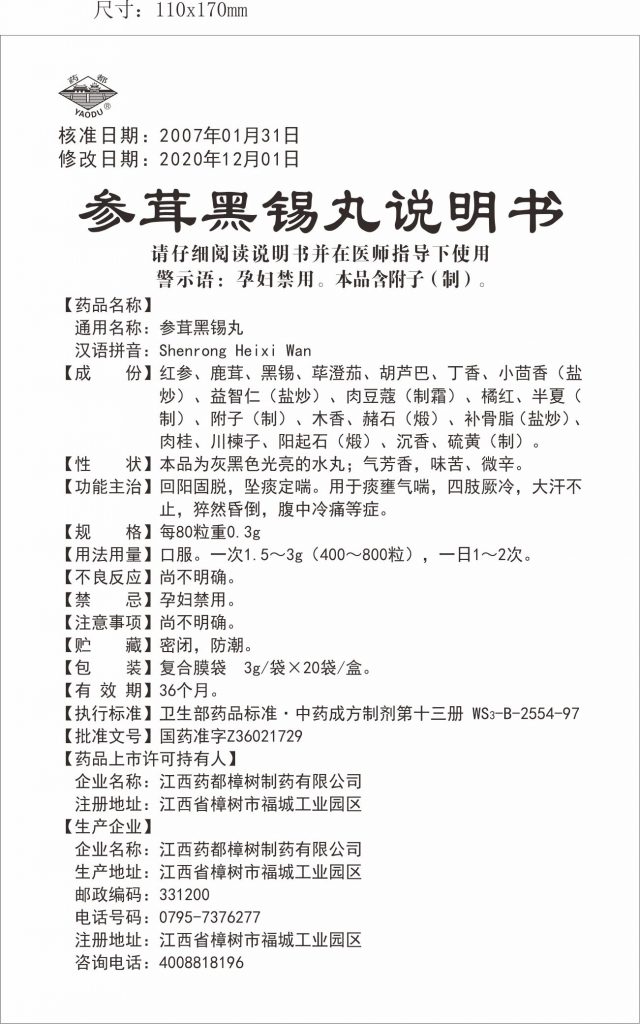回陽固脫,墜痰定喘。用于痰壅氣喘,四肢厥冷,大汗不止,猝然昏倒,腹中冷痛等癥。