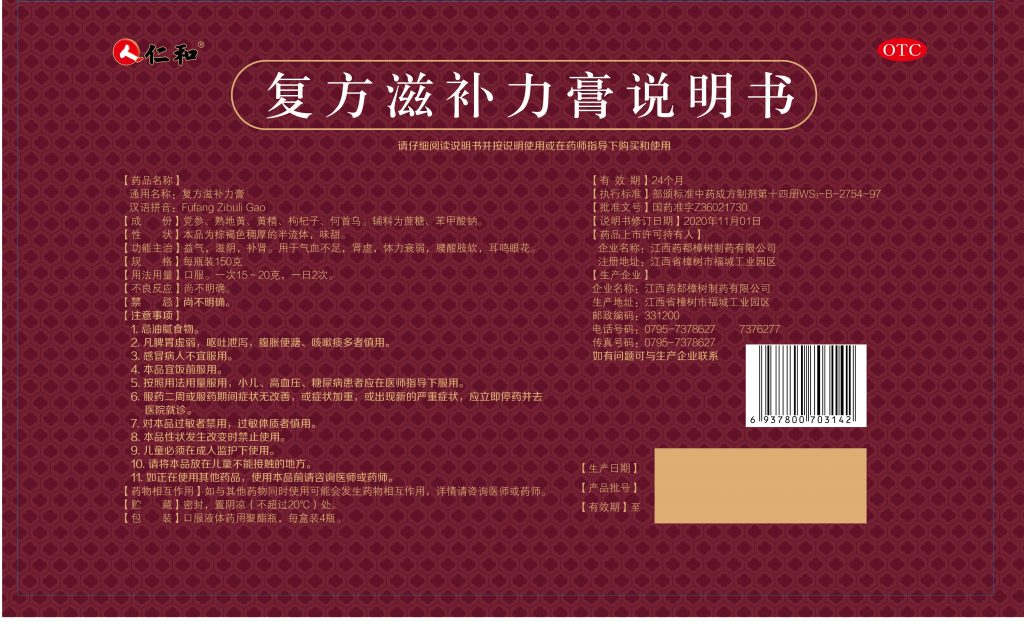 復方滋補力膏150克*4瓶
